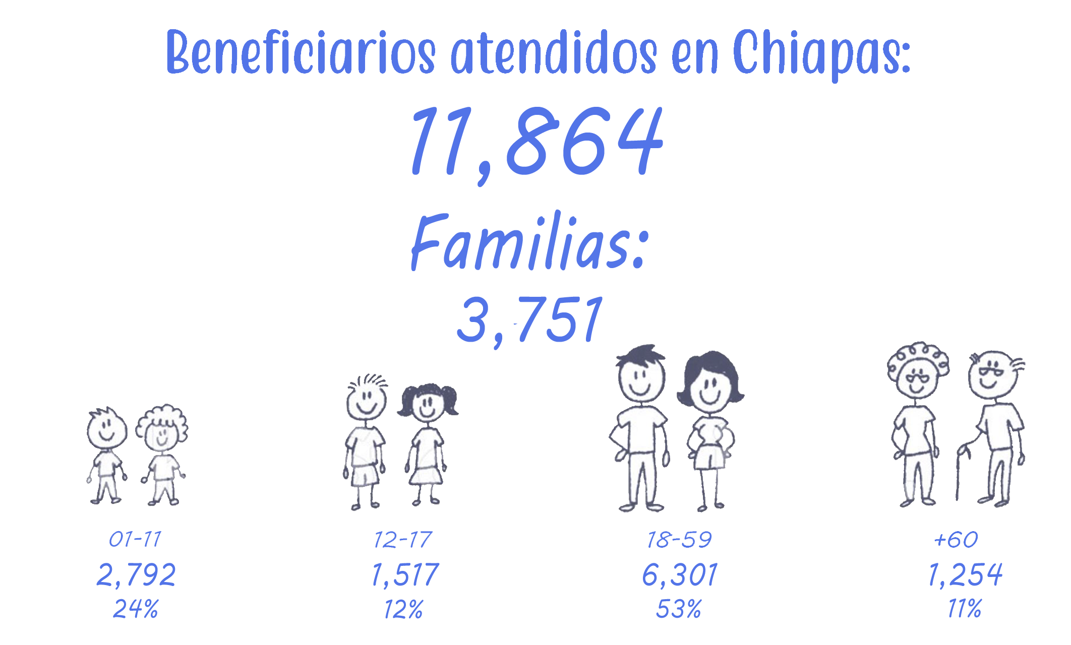 Atendemos a personas en estado de vulnerabilidad que se encuentran en los municipios de Tapachula, Huixtla, Tuzantán, Mazatán, Huehuetán, Escuintla, Cacahoatán, Metapa, Tuxtla Chico, Unión Juárez, Cd. Hidalgo y Arriaga.